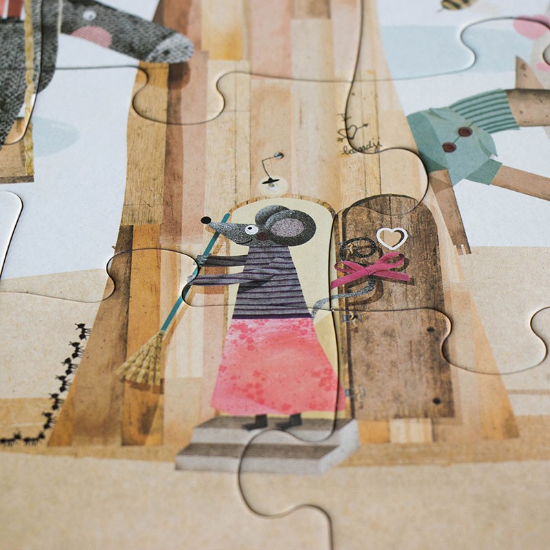 We have climbed to the wooden cabin of our tree and we have found many friends, some of whom we already knew and some of whom we have not welcomed. Come in, come in! And let's take a look, we can play hide-and-seek with the wolf and little red riding hood, tag team with the smug mouse and her suitors, hopscotch with the gluttonous bear, sack race with a greedy squirrel. ... When the day is over, the mouse will surely have prepared a fantastic snack for us.